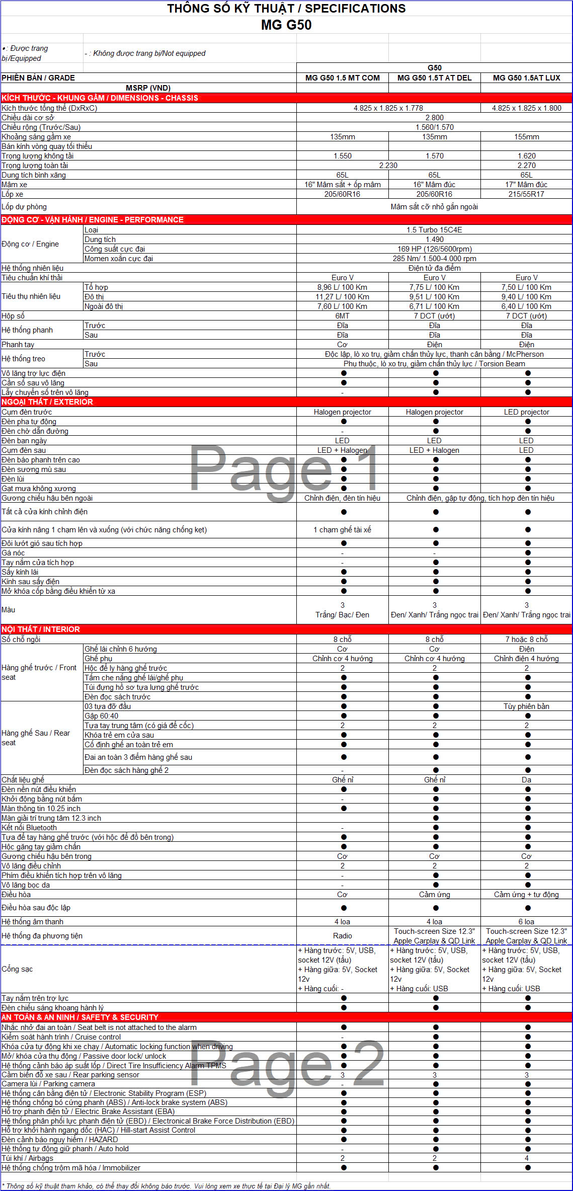 • MG G50 AT Luxury: GIÁ: 749.000.000 VNĐ
