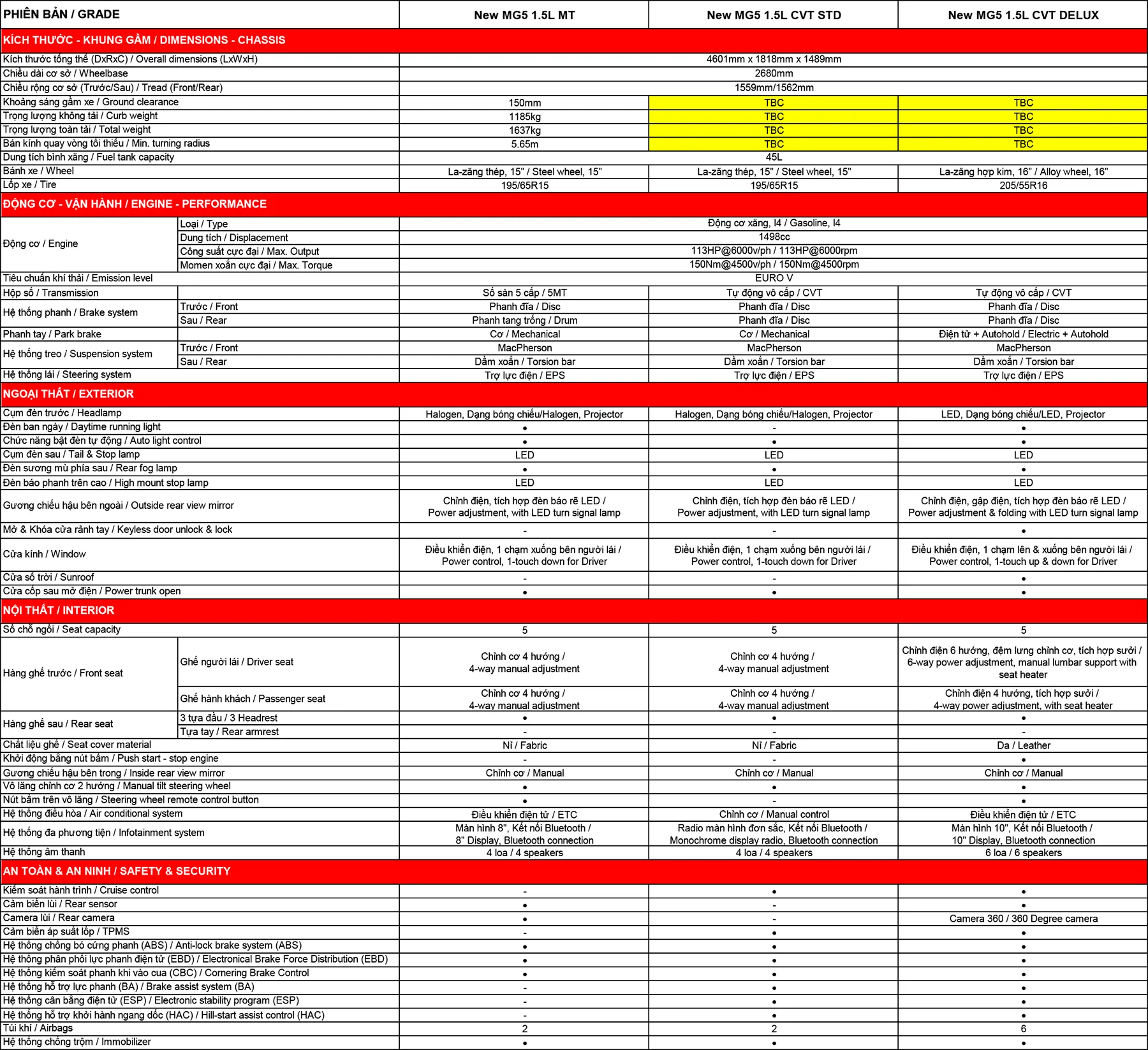 AN TOÀN New MG5